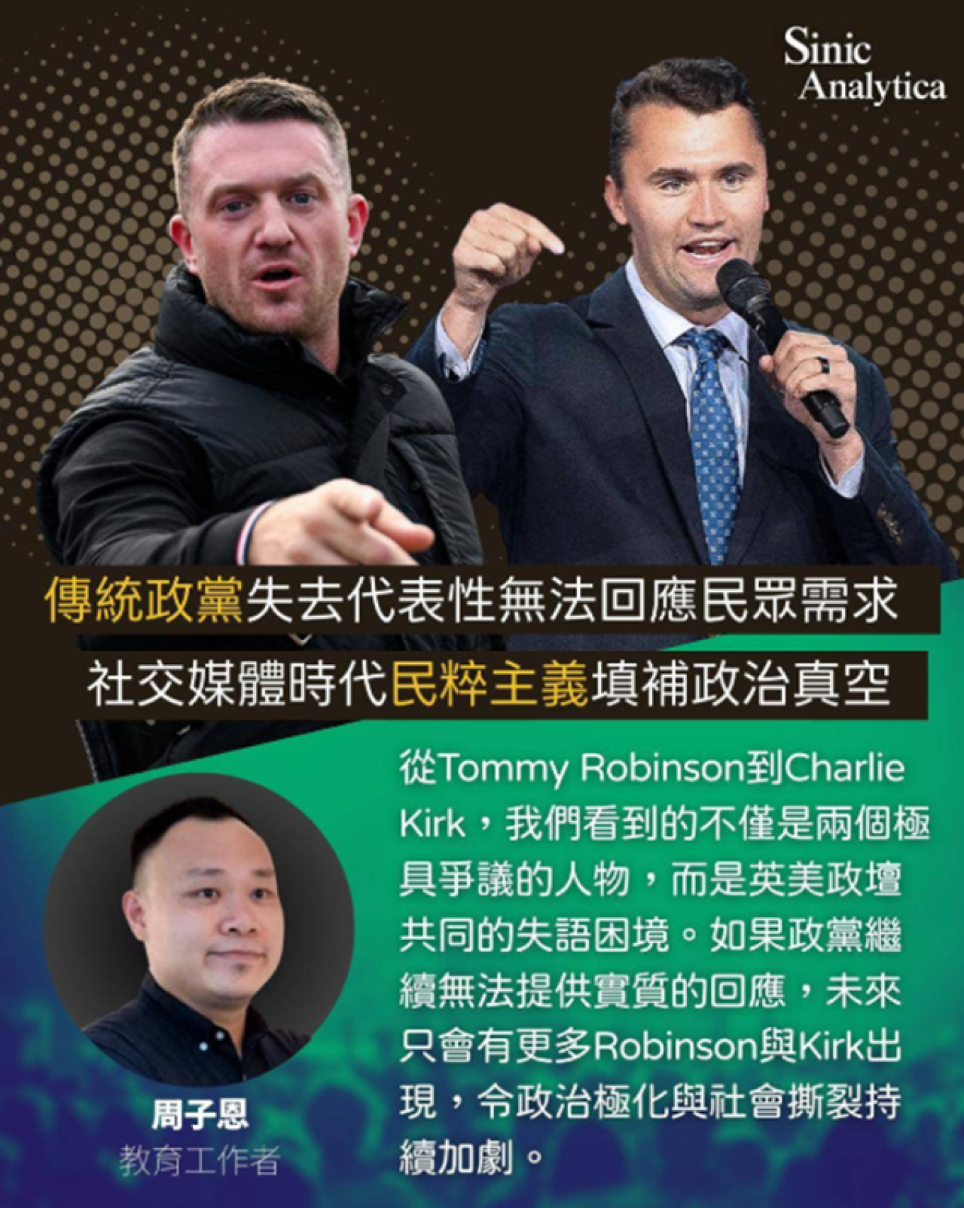 Sinic Analytica 是一家英國顧問機構,匯聚來自英國、加拿大、美國、新加坡、台灣的專業團隊,專精於政治經濟分析。我們主要服務對象包括亞洲外資企業、大中華地區資產擁有人,以及進行海外投資的華人群體。